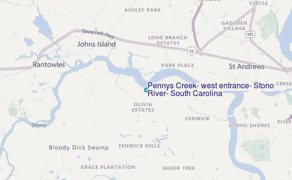 Choose Pennys Creek, west entrance, Stono River, South Carolina Location Map Zoom: