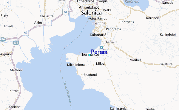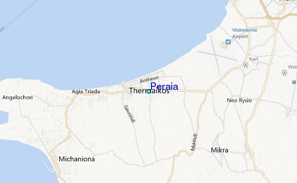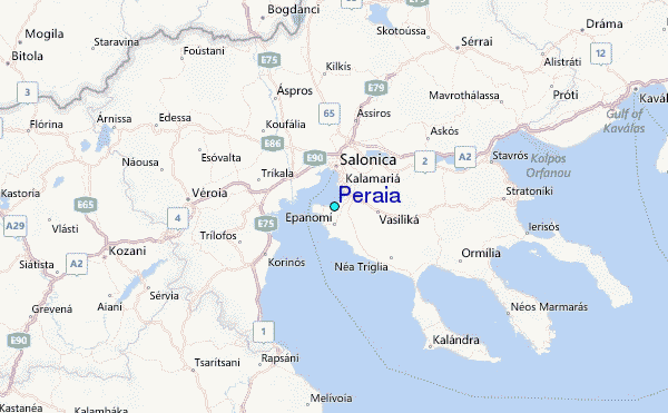 Use this relief map to navigate to tide stations, surf breaks and cities that are in the area of Peraia.