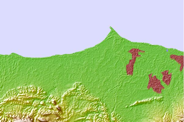 Use this relief map to navigate to tide stations, surf breaks and cities that are in the area of Petarukan.