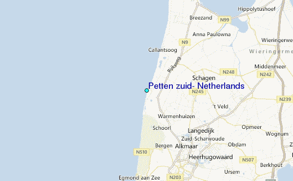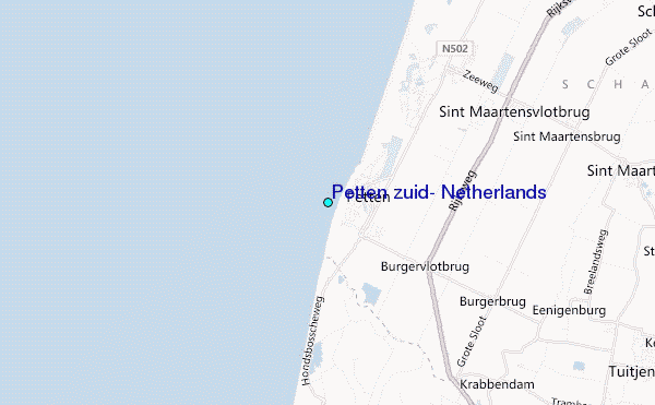 Use this relief map to navigate to tide stations, surf breaks and cities that are in the area of Petten zuid, Netherlands.