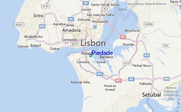 Use this relief map to navigate to tide stations, surf breaks and cities that are in the area of Piedade.