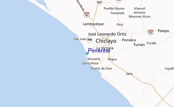 Use this relief map to navigate to tide stations, surf breaks and cities that are in the area of Pimentel.