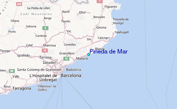 Use this relief map to navigate to tide stations, surf breaks and cities that are in the area of Pineda de Mar.