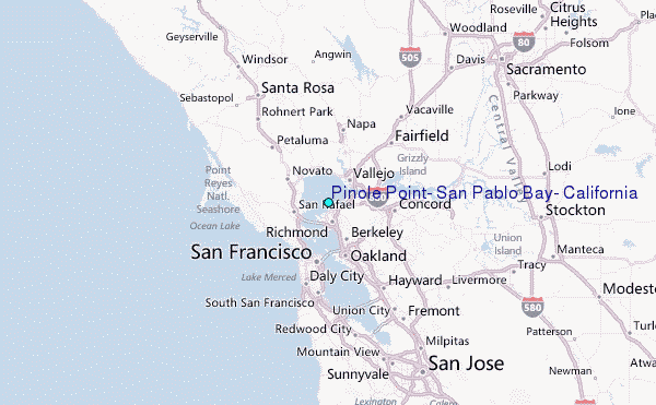 Use this relief map to navigate to tide stations, surf breaks and cities that are in the area of Pinole Point, San Pablo Bay, California.