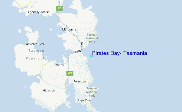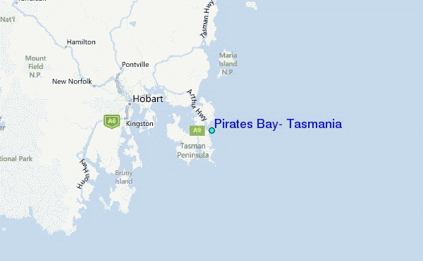 Use this relief map to navigate to tide stations, surf breaks and cities that are in the area of Pirates Bay, Tasmania.
