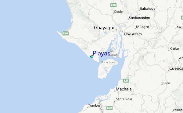 Use this relief map to navigate to tide stations, surf breaks and cities that are in the area of Playas.