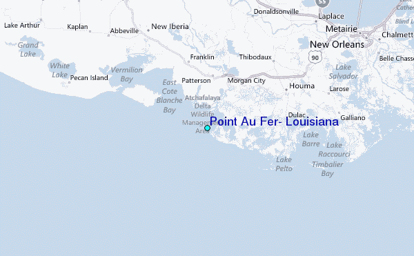 Use this relief map to navigate to tide stations, surf breaks and cities that are in the area of Point Au Fer, Louisiana.