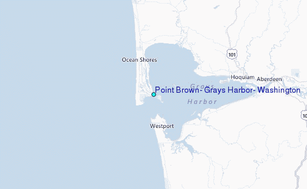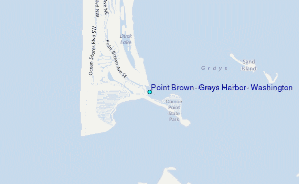 Use this relief map to navigate to tide stations, surf breaks and cities that are in the area of Point Brown, Grays Harbor, Washington.