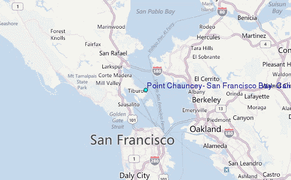 Use this relief map to navigate to tide stations, surf breaks and cities that are in the area of Point Chauncey, San Francisco Bay, California.