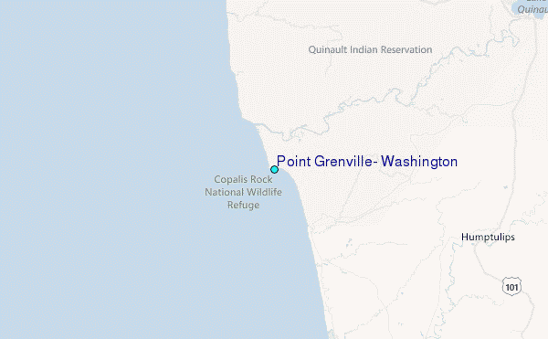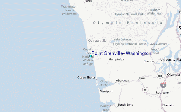 Use this relief map to navigate to tide stations, surf breaks and cities that are in the area of Point Grenville, Washington.