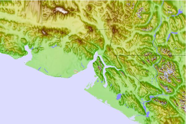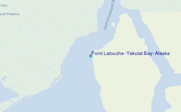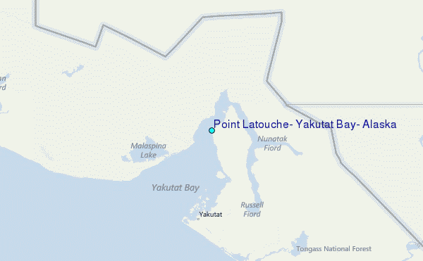 Use this relief map to navigate to tide stations, surf breaks and cities that are in the area of Point Latouche, Yakutat Bay, Alaska.