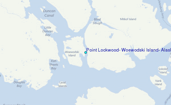 Use this relief map to navigate to tide stations, surf breaks and cities that are in the area of Point Lockwood, Woewodski Island, Alaska.
