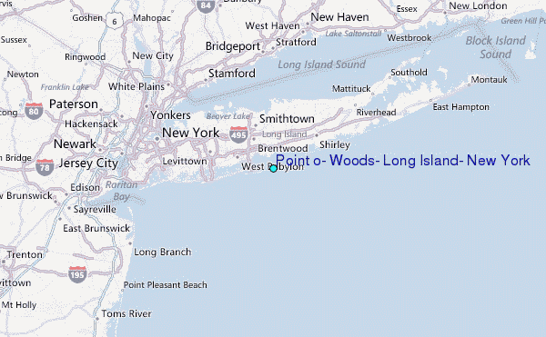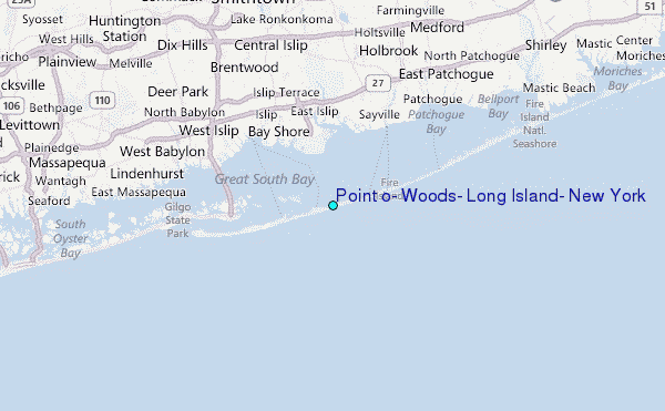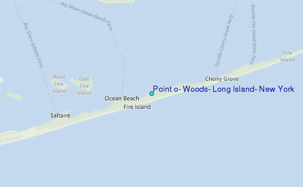 Use this relief map to navigate to tide stations, surf breaks and cities that are in the area of Point o' Woods, Long Island, New York.