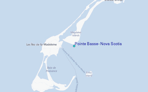 Use this relief map to navigate to tide stations, surf breaks and cities that are in the area of Pointe Basse, Nova Scotia.