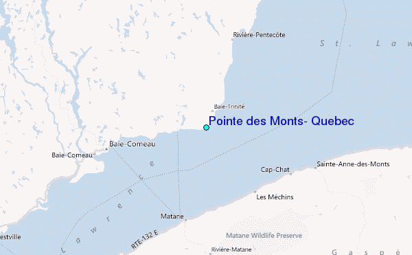 Use this relief map to navigate to tide stations, surf breaks and cities that are in the area of Pointe des Monts, Quebec.