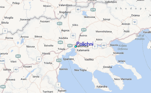 Use this relief map to navigate to tide stations, surf breaks and cities that are in the area of Polichni.
