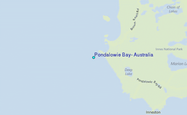 Use this relief map to navigate to tide stations, surf breaks and cities that are in the area of Pondalowie Bay, Australia.