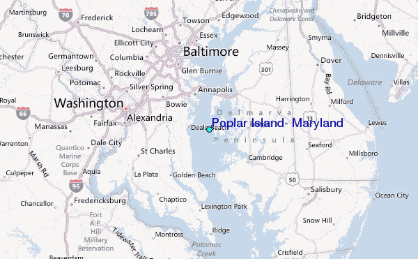 Use this relief map to navigate to tide stations, surf breaks and cities that are in the area of Poplar Island, Maryland.