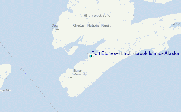 Use this relief map to navigate to tide stations, surf breaks and cities that are in the area of Port Etches, Hinchinbrook Island, Alaska.