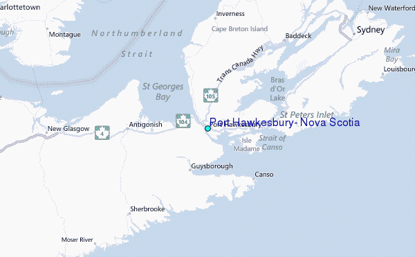 Other Nearby Locations' tide tables and tide charts to Port Hawkesbury, Nova Scotia: