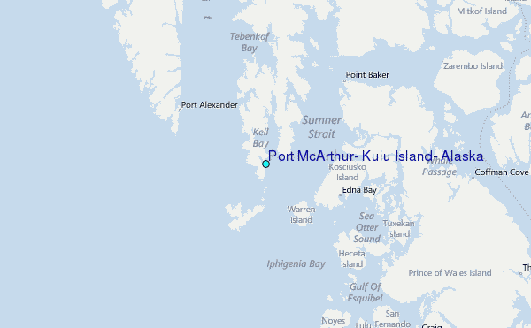 Use this relief map to navigate to tide stations, surf breaks and cities that are in the area of Port McArthur, Kuiu Island, Alaska.