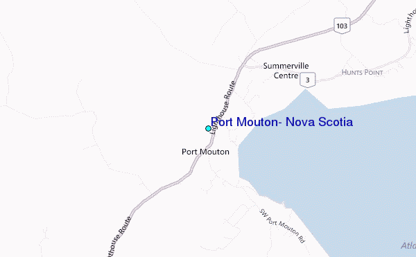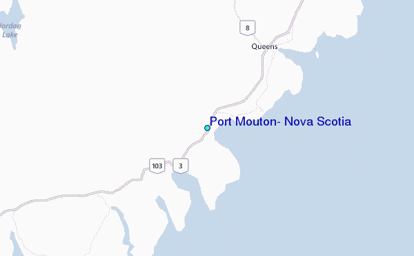 Use this relief map to navigate to tide stations, surf breaks and cities that are in the area of Port Mouton, Nova Scotia.