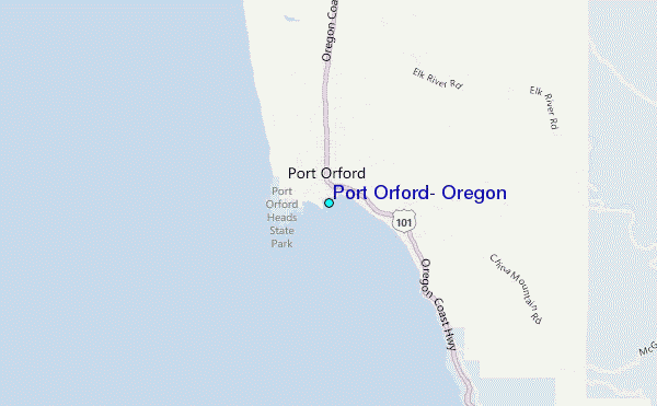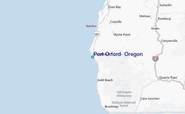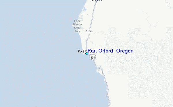 Use this relief map to navigate to tide stations, surf breaks and cities that are in the area of Port Orford, Oregon.