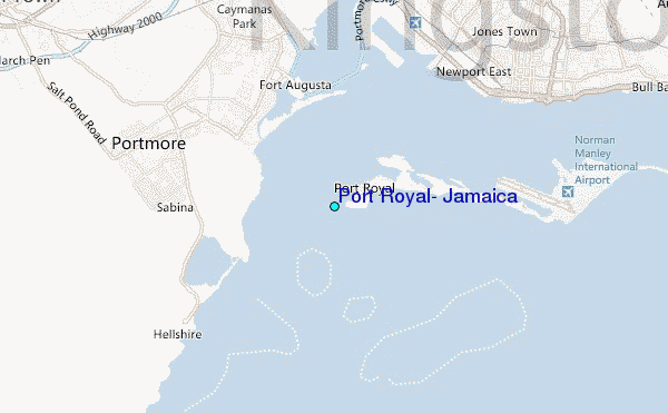 Use this relief map to navigate to tide stations, surf breaks and cities that are in the area of Port Royal, Jamaica.