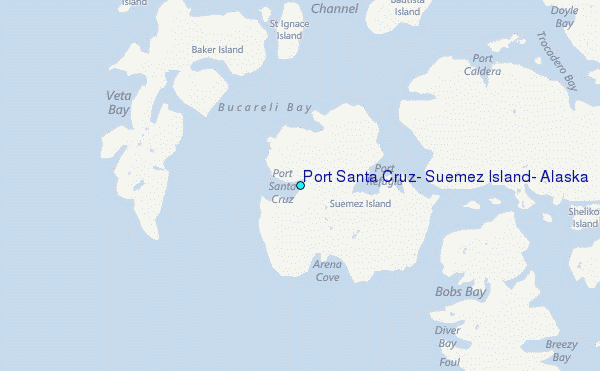 Use this relief map to navigate to tide stations, surf breaks and cities that are in the area of Port Santa Cruz, Suemez Island, Alaska.
