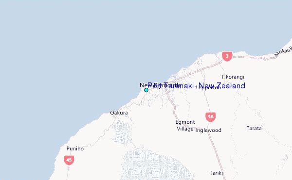 Use this relief map to navigate to tide stations, surf breaks and cities that are in the area of Port Taranaki, New Zealand.