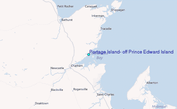 Use this relief map to navigate to tide stations, surf breaks and cities that are in the area of Portage Island, off Prince Edward Island.