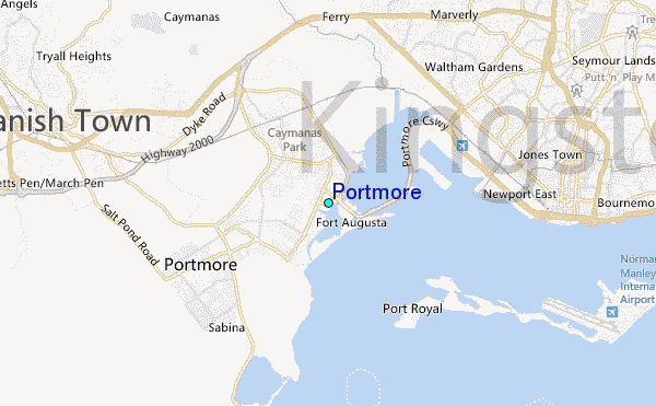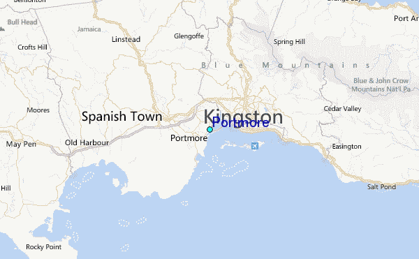 Use this relief map to navigate to tide stations, surf breaks and cities that are in the area of Portmore.
