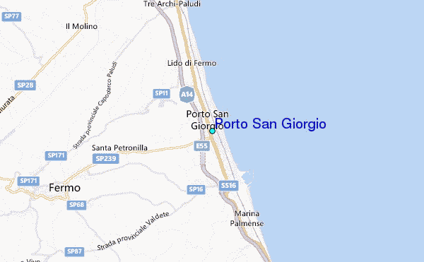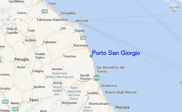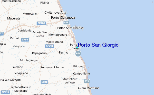 Use this relief map to navigate to tide stations, surf breaks and cities that are in the area of Porto San Giorgio.