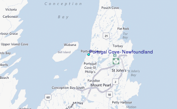 Other Nearby Locations' tide tables and tide charts to Portugal Cove, Newfoundland: