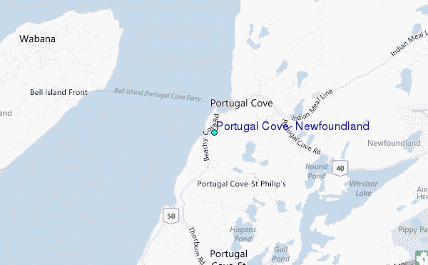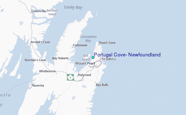 Use this relief map to navigate to tide stations, surf breaks and cities that are in the area of Portugal Cove, Newfoundland.