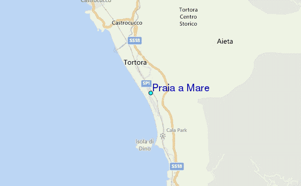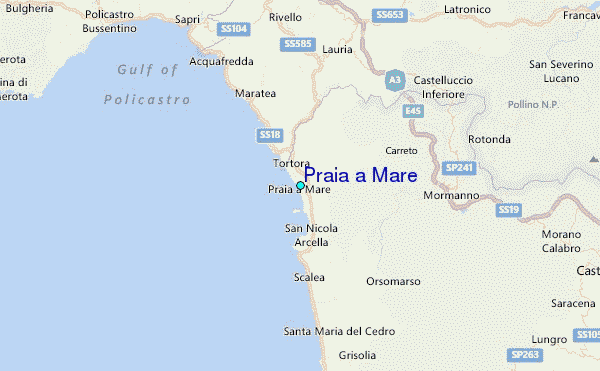 Use this relief map to navigate to tide stations, surf breaks and cities that are in the area of Praia a Mare.