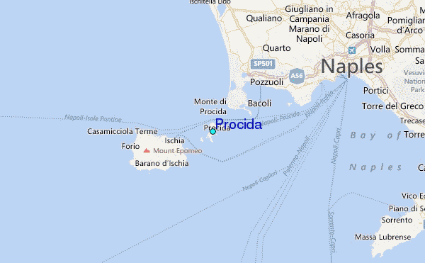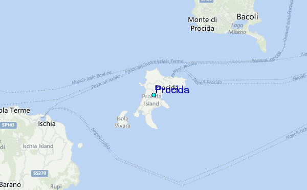 Use this relief map to navigate to tide stations, surf breaks and cities that are in the area of Procida.
