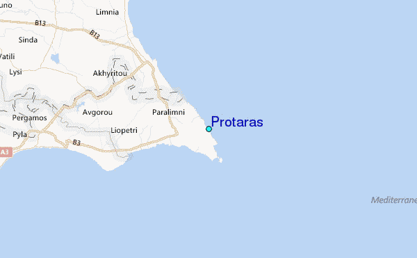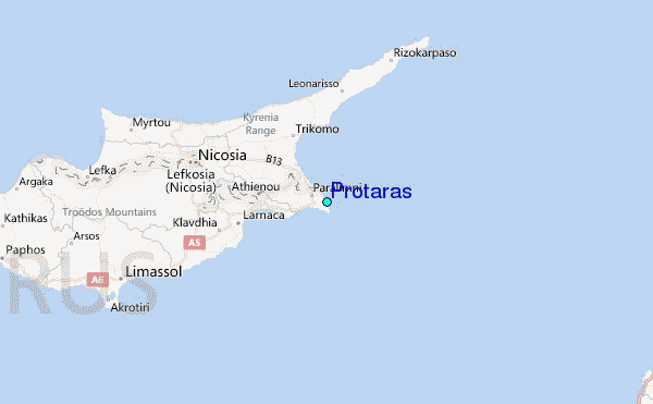 Use this relief map to navigate to tide stations, surf breaks and cities that are in the area of Protaras.