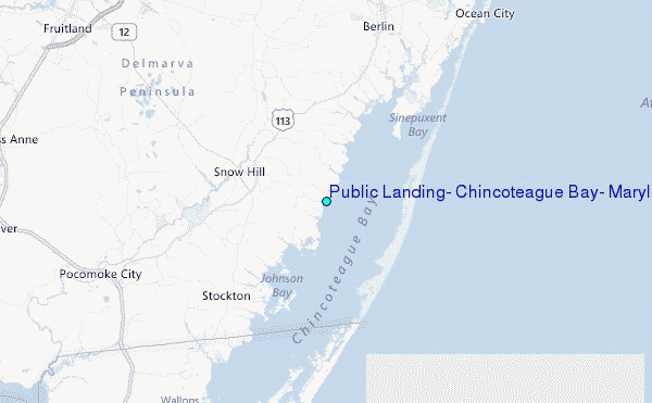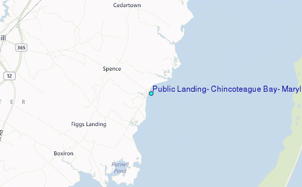 Use this relief map to navigate to tide stations, surf breaks and cities that are in the area of Public Landing, Chincoteague Bay, Maryland.