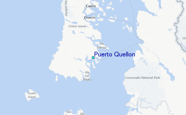 Use this relief map to navigate to tide stations, surf breaks and cities that are in the area of Puerto Quellon.