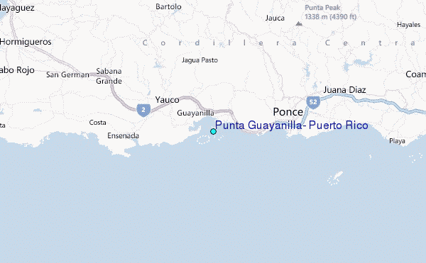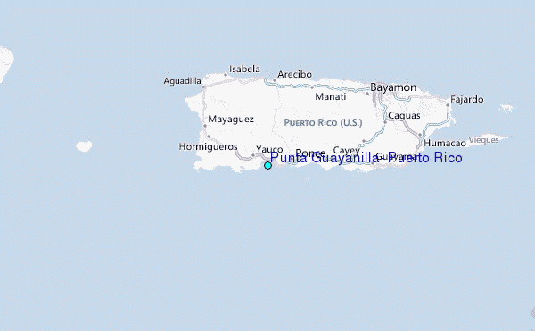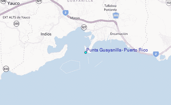 Use this relief map to navigate to tide stations, surf breaks and cities that are in the area of Punta Guayanilla, Puerto Rico.