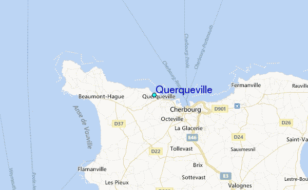 Use this relief map to navigate to tide stations, surf breaks and cities that are in the area of Querqueville.