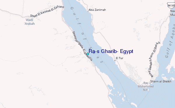 Use this relief map to navigate to tide stations, surf breaks and cities that are in the area of Ra's Gharib, Egypt.