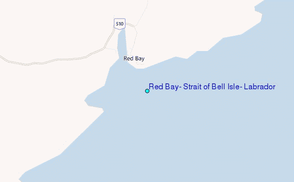 Use this relief map to navigate to tide stations, surf breaks and cities that are in the area of Red Bay, Strait of Bell Isle, Labrador.