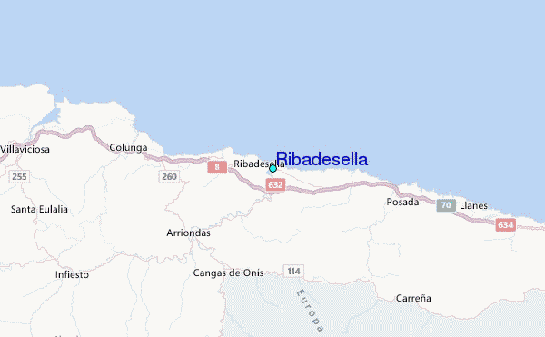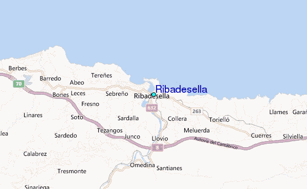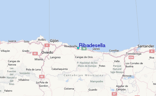 Use this relief map to navigate to tide stations, surf breaks and cities that are in the area of Ribadesella.