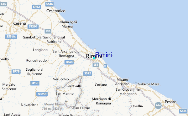 Use this relief map to navigate to tide stations, surf breaks and cities that are in the area of Rimini.
