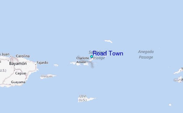 Use this relief map to navigate to tide stations, surf breaks and cities that are in the area of Road Town.