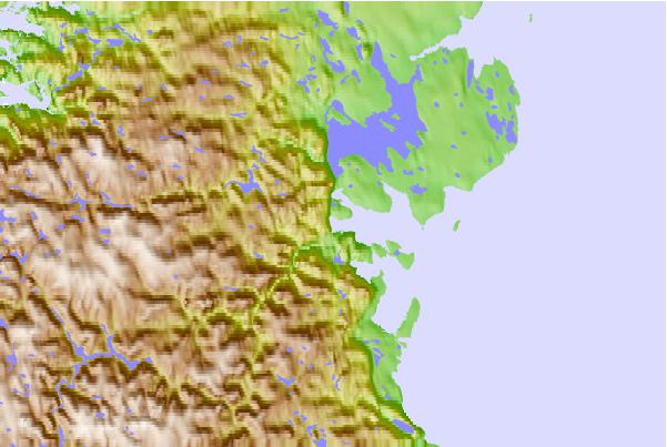 Use this relief map to navigate to tide stations, surf breaks and cities that are in the area of Roche Bay, Nunavut.