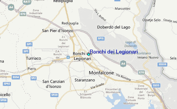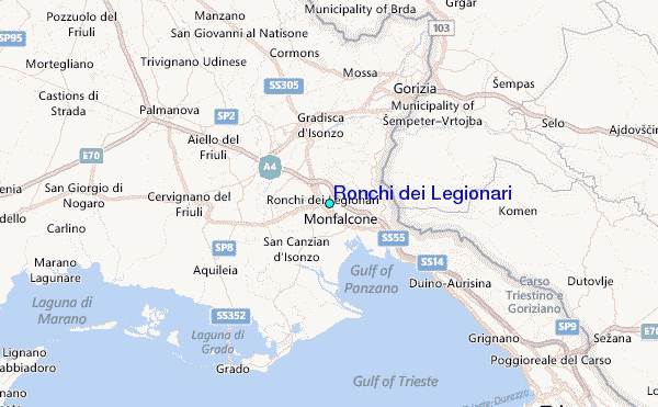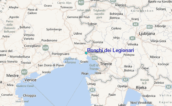 Use this relief map to navigate to tide stations, surf breaks and cities that are in the area of Ronchi dei Legionari.