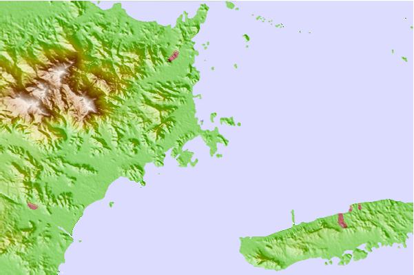 Use this relief map to navigate to tide stations, surf breaks and cities that are in the area of Roosevelt Roads, Puerto Rico.